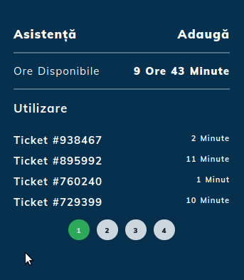 - Vēl joprojām, esot šajā lapā, ir vēl viena sadaļa, kas skaita atbalsta stundas, kas izmantotas dažādām operācijām. Saskarnē jūs redzēsit, ka katram individuālajam pieprasījumam būs atvērts atbalsta biļetens kontā, kurā būs informācija, kas saistīta ar norēķināto procedūru, kā arī atlikušās atbalsta stundas.