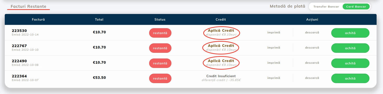Noklikšķiniet uz Izmantot kredītu, lai samaksātu rēķinu.