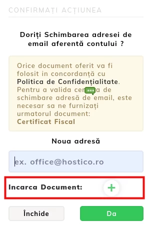 E-pasta adreses maiņa, kas saistīta ar Hostico klienta kontu.