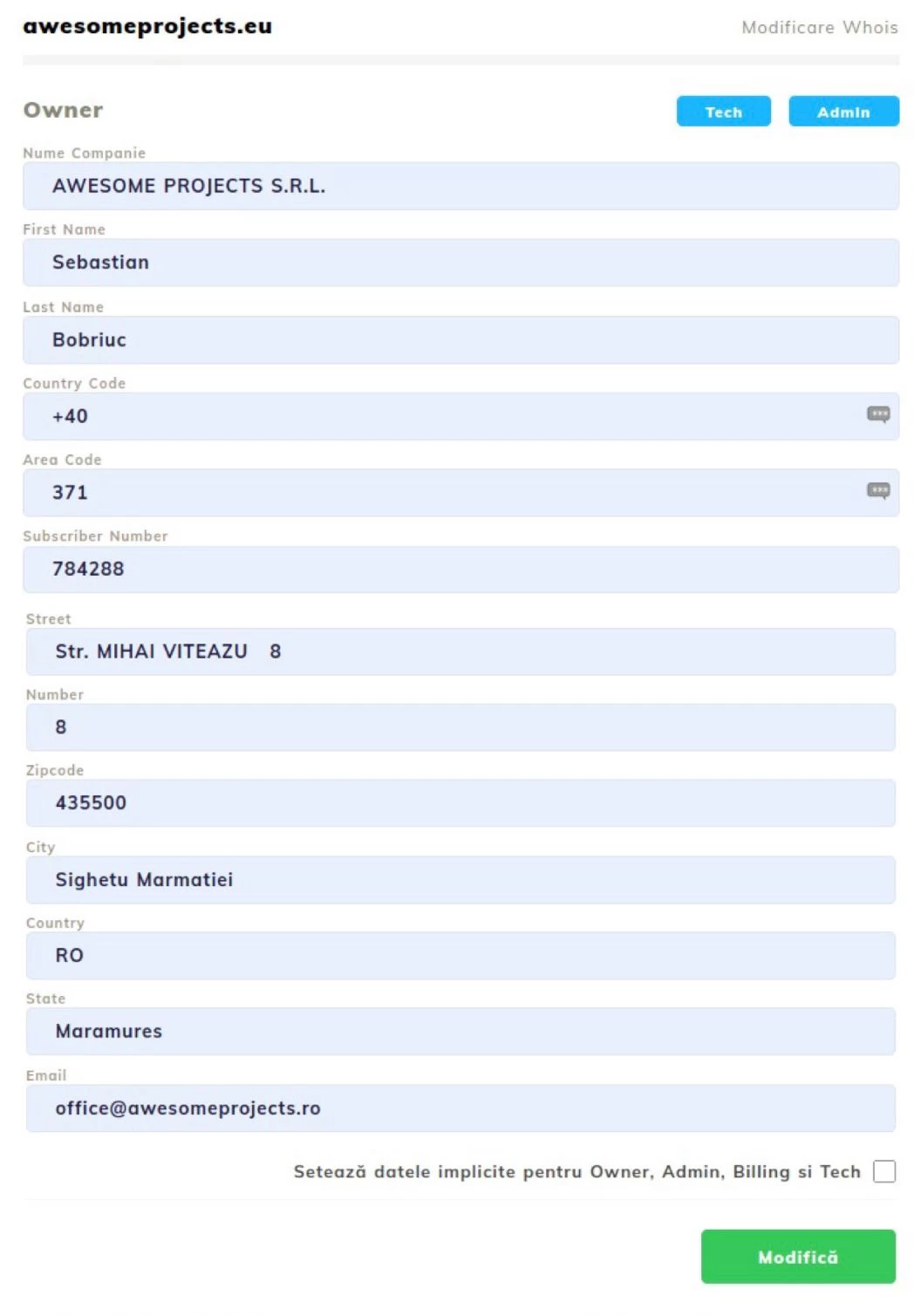 - Reģistratā datu maiņa domēna līmenī automātiski nenovedīs pie norēķinu datu atjaunināšanas. Lai mainītu norēķinus, jums būs jāsako soļiem attiecīgajā pamācībā: Pro formas rēķina maiņa;