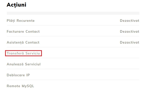 Šajā darbībā tiks prezentēti soļi, kas nepieciešami pakalpojuma pārcelšanai uz citu Hostico lietotāju.