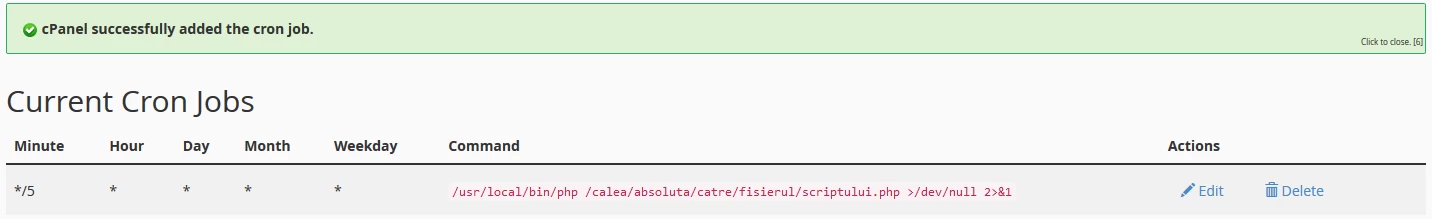 - Ja viss noritēja veiksmīgi, cronjob sāks darboties lietotāja norādītajos laikos.