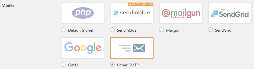 - Izvēlieties Other SMTP opciju Mailer sadaļā.