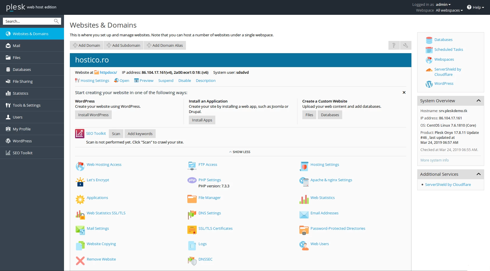 Plesk saskarne būs tāda pati neatkarīgi no izvēlētā licences veida, atšķirība būs tikai tajā, cik daudz domēnu var pievienot vadības panelī.
